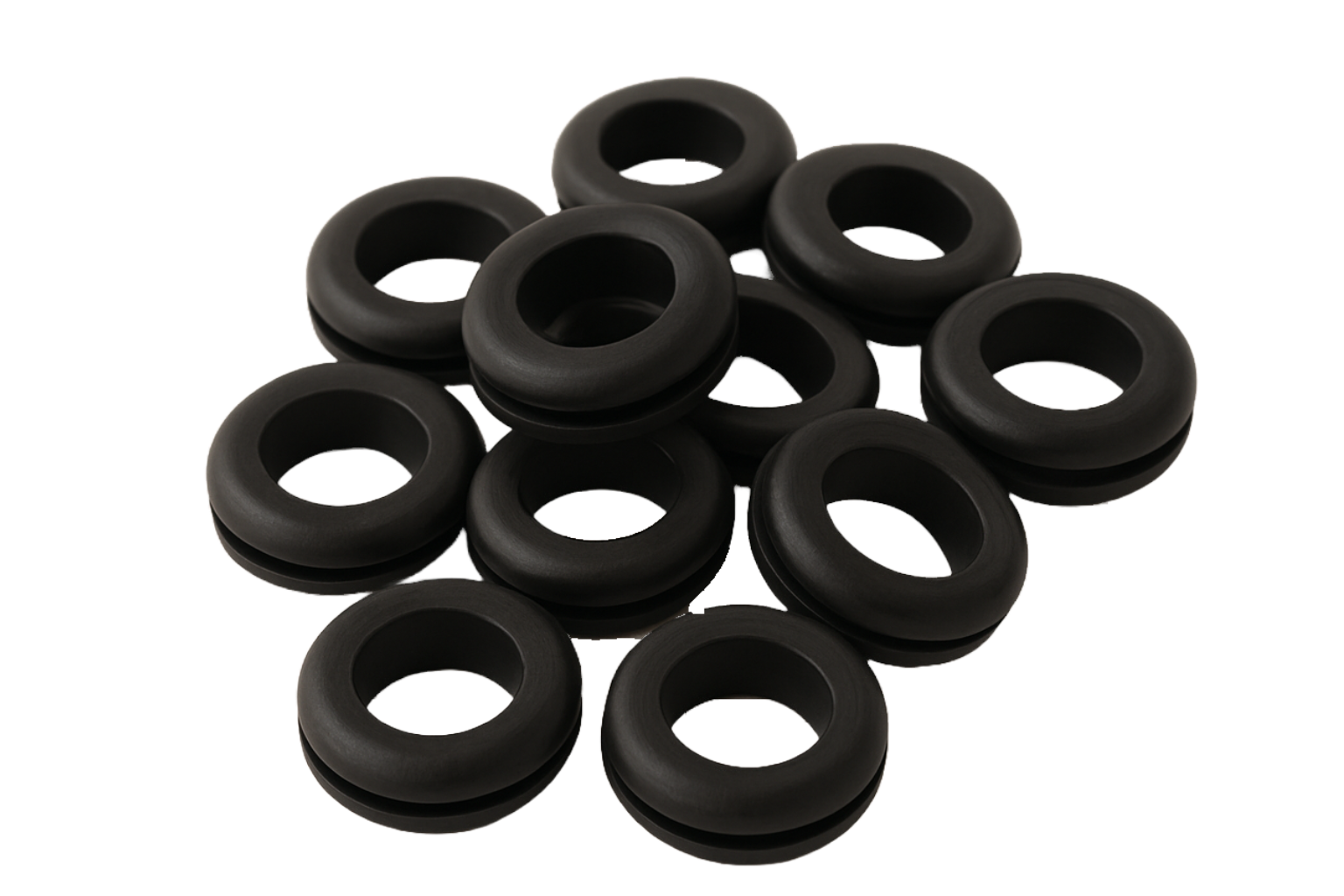 Grommets are small rubber rings used to protect or insulate openings in metal, plastic, or other rigid materials. Commonly found in electrical panels, machinery, and automotive parts, they prevent wires or tubing from rubbing against sharp edges, reducing wear and preventing damage. They’re also great for sealing holes, dampening vibrations, and improving appearance.