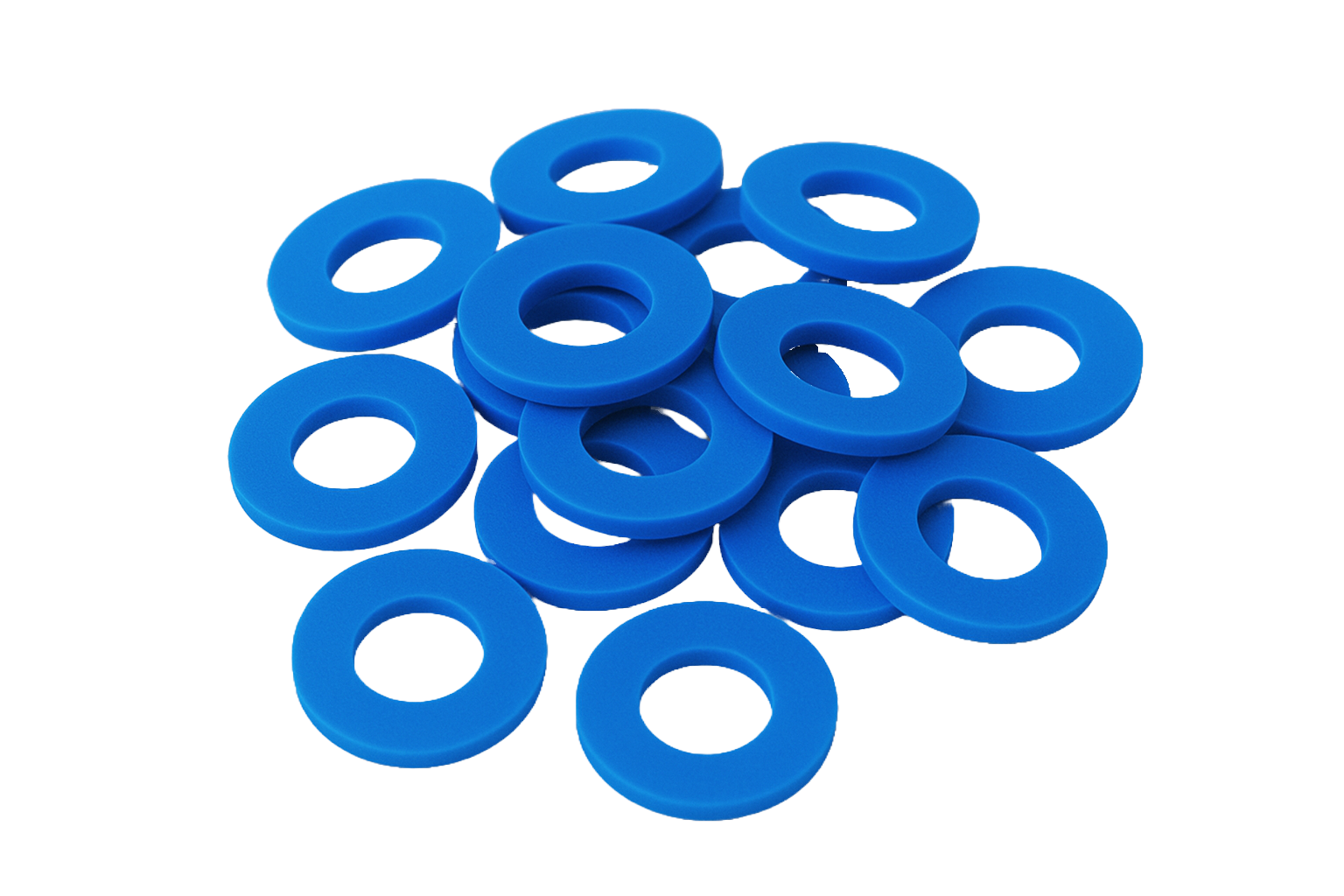 Rubber washers are versatile components used to cushion, seal, or space between parts. Commonly used as spacers, they help absorb vibration, reduce noise, and prevent wear between surfaces. Ideal for electrical, plumbing, and mechanical applications, our washers are custom-cut to your specs for a perfect fit every time.